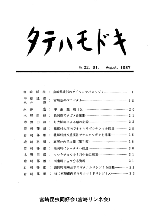 | 岩崎 郁雄 : 宮崎県北部のタイワンツバメシジミ ……………… 1 |