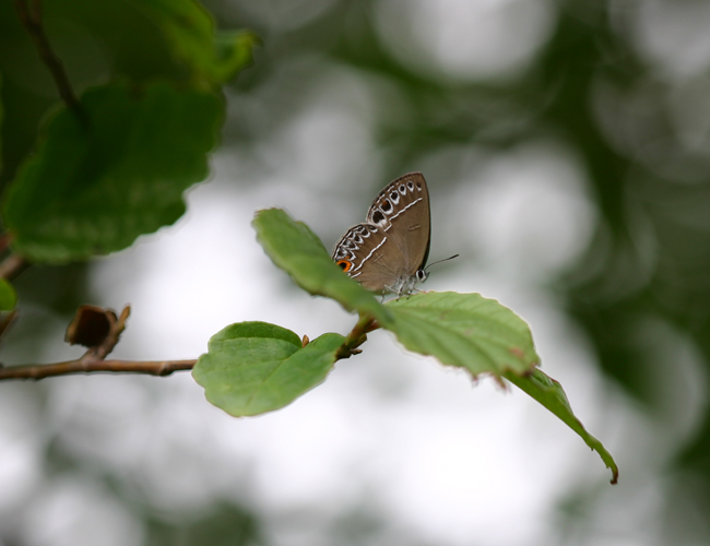 山梨では人家の近くで見れるウラクロシジミも,宮崎では高山に行かないと棲息していない.食樹のマンサクが1200mを越えるような山でないと生えていないからである.そんな場所でも,写真7のようにマナーの悪いマニアによる乱獲(マンサクの伐採跡)が見受けられるのが残念である.(宮崎県レッドデータリストDD-2)