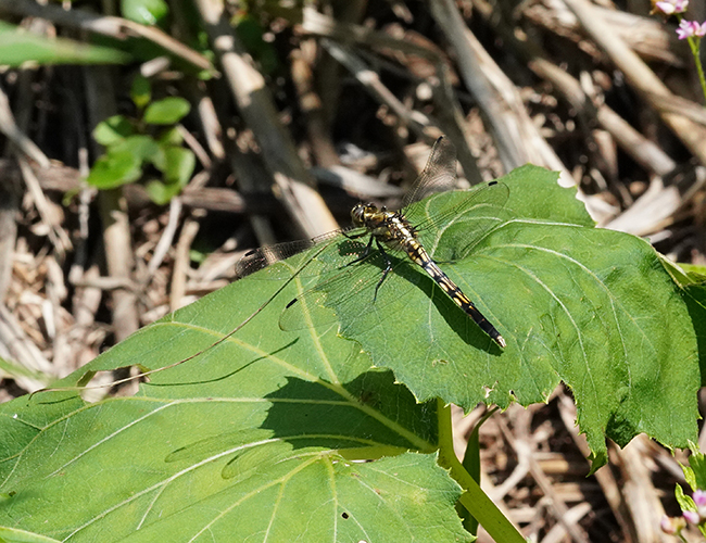オオシオカラトンボに似ているが,体がほっそりとし,腹部第10節と尾毛が白い.複眼は緑色の個体が多いが,この個体は複眼が茶色っぽい.