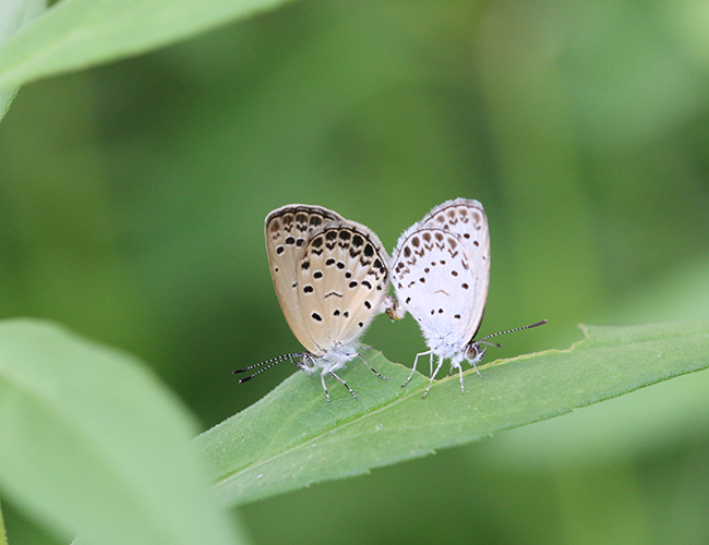 日本のどこにでもいるシジミチョウ.県内でも市街地から山地まで幅広く分布し,個体数も多い.春型の♂は綺麗な青色をしている.