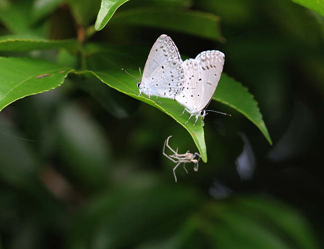 好隣梅(2016年9月16日)(ヒサカキの葉の上で交尾する♂♀)