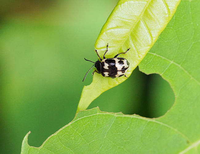 名前のとおりイタドリで見つかる.赤と黒の模様が付いた綺麗なハムシ.下の写真のように黄色い個体もいる.