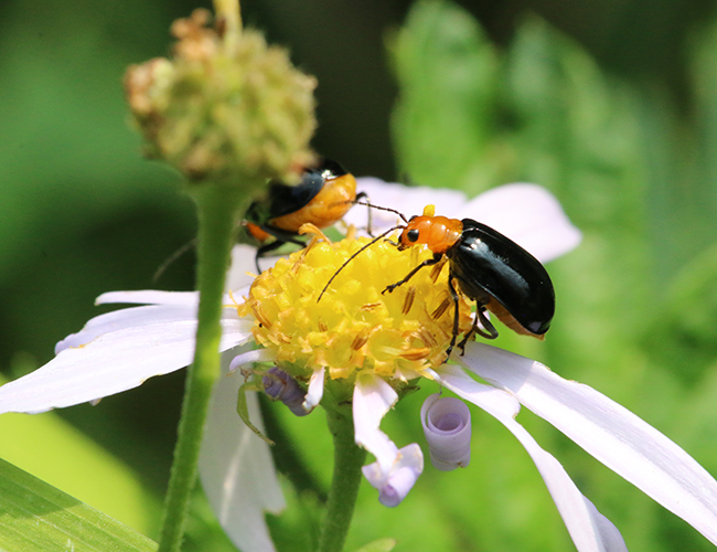 黄色と黒色で目立つハムシで個体数は多い.各種の花に来るが,農家からはウリ類の害虫として嫌われている.