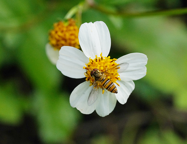 腹部に二重線が入るヒラタアブで,最も普通に見られる.