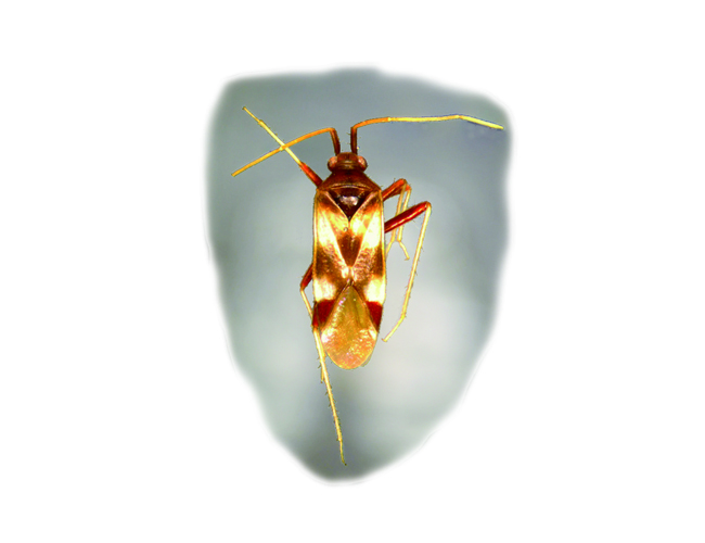 体長4mm内外 モンシロハシリカスミカメに似ているが、腿節は全体的に暗化する。(延岡市)