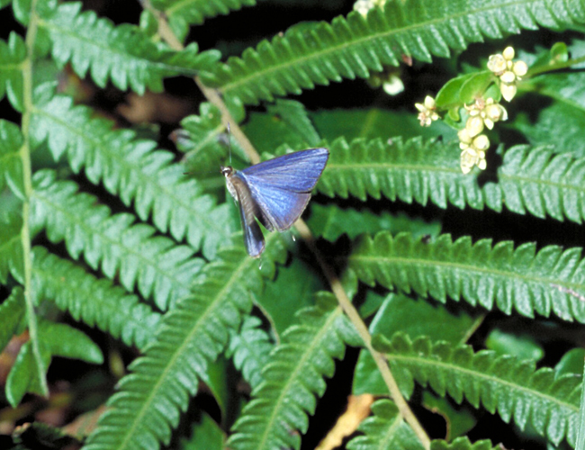 宮崎では1954年,1960年と1995年にアマミウラナミシジミが大発生している.発生地は高鍋町の一例を除くと全て日南海岸沿いであり,その中でも南郷町大島の記録が多かった.最近は,夏から秋にかけては南郷町大島で確実にアマミウラナミシジミを見ることができる.南郷町大島には食樹のモクタチバナも多数自生しているので,定着している可能性も大きい.