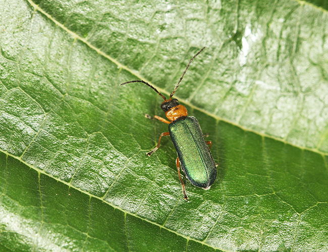 オキナワアオバホソハムシ Apophylia elngata