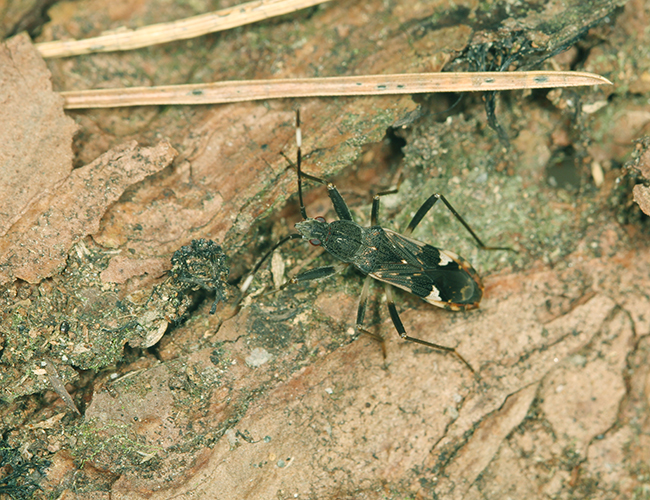 少し大きめのナガカメムシで県内ではよく見られる.自然共生サイトでは道沿いや側溝の落ち葉の下に隠れていたり,切り株のなかや,枯れ木の樹皮下などで見つかる.