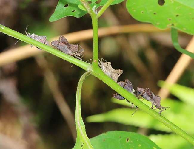 ハーレムを作ることで有名なカメムシ.実際は♀の集団が受け入れる♂を決めるようだ.ナス科植物を寄主とするので,トマトやピーマンの害虫として農家に嫌われている.