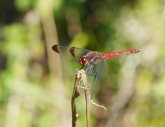 翅端に黒斑があり,♂は成熟すると全身が真っ赤になる.