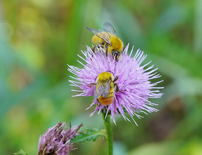 マルハナバチとしては小型で,♂と♀で見かけが違う.♀は黒い体でお尻が黄橙色になる.