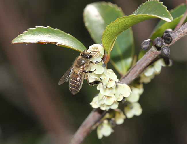 好隣梅(2012年3月19日)(ヒサカキの花で求蜜)
