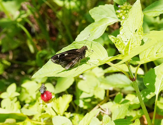 南方系のセセリチョウで,温暖化に伴い,日本列島を北上している.黒い翅に白帯が目立つ.幼虫はハナミョウガなどショウガ科植物の葉を撒いて巣を作る.