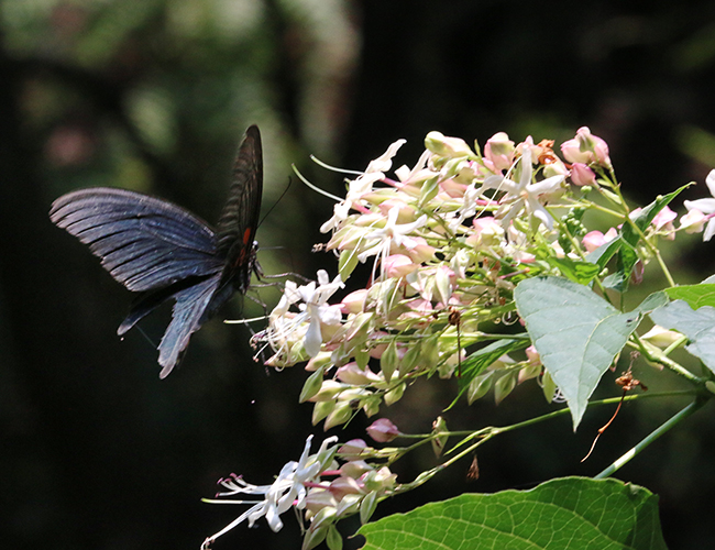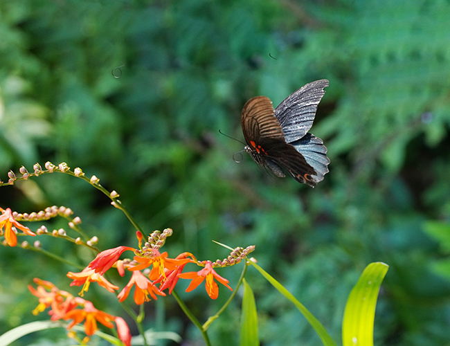 ナガサキアゲハには尾状突起がない.どちらかというと栽培種のミカンを好むが,周辺には農家もあるので,ナガサキアゲハも飛んでいる.自然共生サイトでは♂しか写していないが,ナガサキアゲハの♀は後翅に大きな白斑があり,見栄えがする.