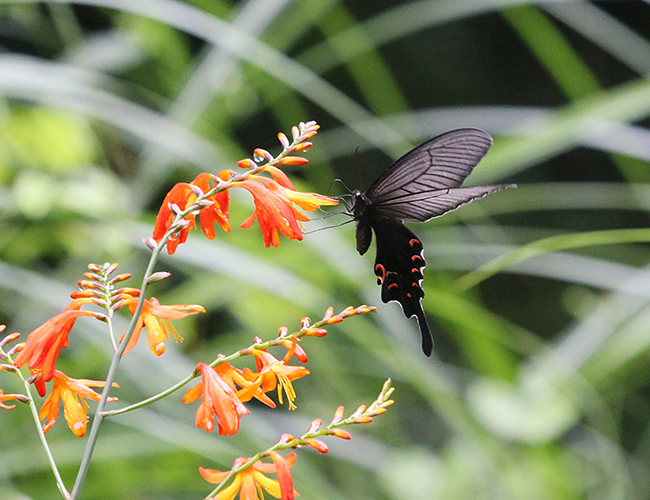 宮崎県内ではオナガアゲハは山間地で見かける.海岸に近い加江田〜内海地区で確認したのは自然共生サイトで見たこの個体だけである.まだ生息していると良いのだが.