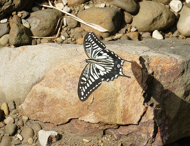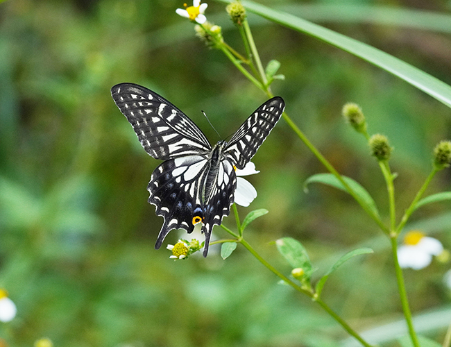 ナミアゲハもカラスザンショウなどのミカン科植物を寄主としている.MRTの森には刈り取られずに残されているカラスザンショウがあるので,ナミアゲハも多い.