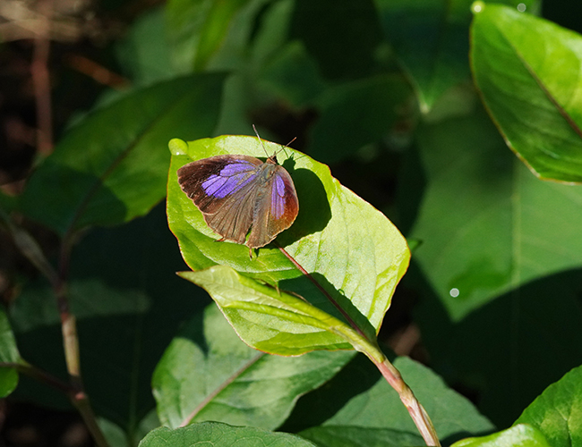 ♀の翅表は綺麗な紫色だが,♂の翅表は全体が渋い紫色である.成虫で越冬し,ときに集団になることがある.