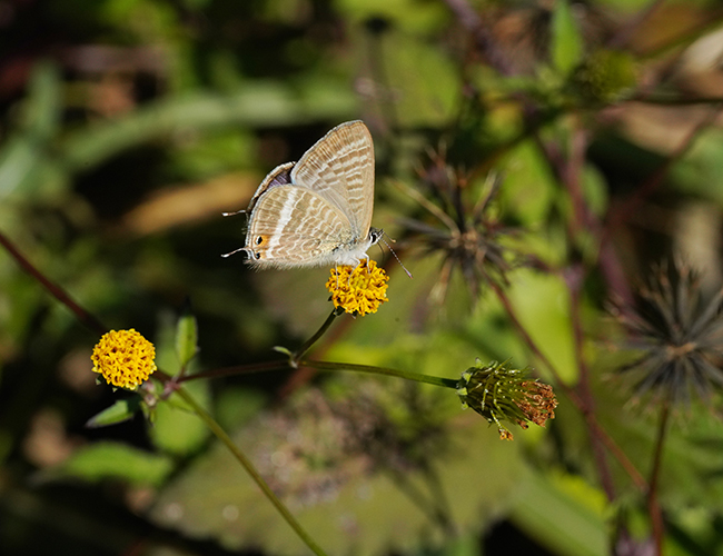 毎年日本列島を北上するシジミチョウ.秋になると個体数が増えるが,ほとんどが越冬できずに死んでしまう.宮崎県は成虫が越冬できる数少ない地域なので,春にも成虫を見ることができる.