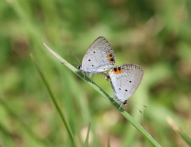 自然共生サイトのシンボル的なシジミチョウ.秋にだけ成虫が出現し,シバハギだけを食草とする珍しいチョウで,一年間のほとんどの期間を幼虫で過ごす.ツバメシジミと混生するので見分けるには注意が必要.自然共生サイトを含む宮崎市南部で保全活動が行われている.