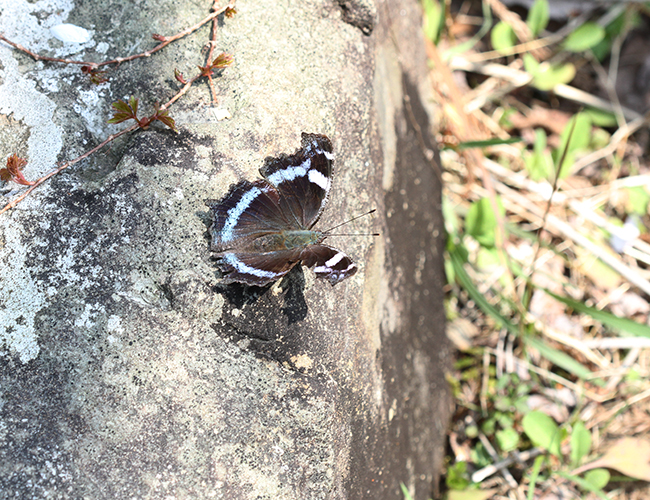 食草はサルトリイバラやホトトギスなどのユリ科植物で,自然共生サイト内にも多い.成虫で越冬するが,個体数はそれほど多くない.