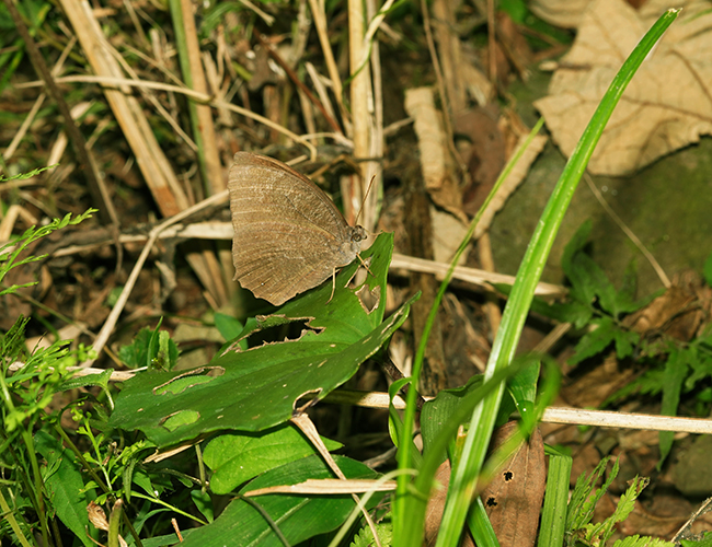 大型のヒカゲチョウ.個体数も多く,成虫で越冬する.冬の暖かい日に大きなチョウが突然飛び出してくれば,クロコノマチョウのことが多い.
