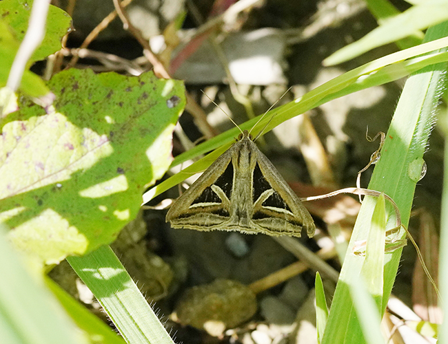 止まっている時の姿は三角形のモザイク模様に見える.寄主はヤハズソウなので,土手などの草地に多い.