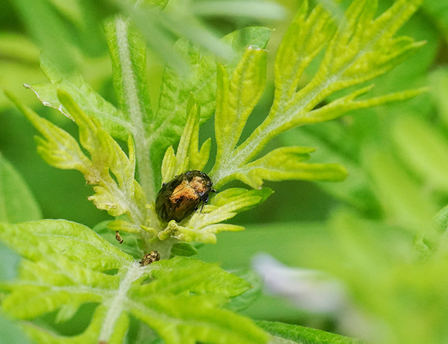 ヨモギで1cmくらいの大きめのハムシを見つけたら,ヨモギハムシであることが多い.