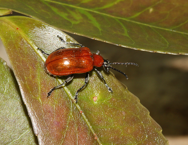 ルリタテハの幼虫を探すためにサルトリイバラをあたると,良く見つかるナガハムシ.