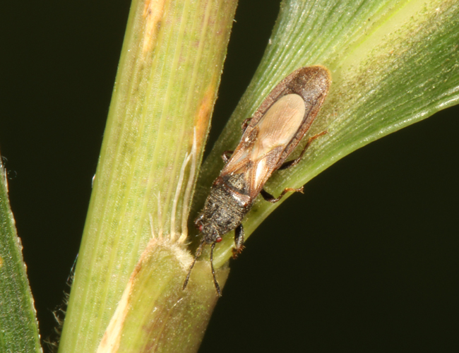 体長4〜6mm 体が細長くて前種に似るが、前胸背全体に光沢がある。県内に広く分布し、メダケに寄生するので、ツノコバネナガカメムシと一緒にとれることが多いが、数は前種よりもやや少ない。(高千穂町、椎葉村、延岡市、日向市、都農町、西都市、えびの市、宮崎市、日南市、串間市)