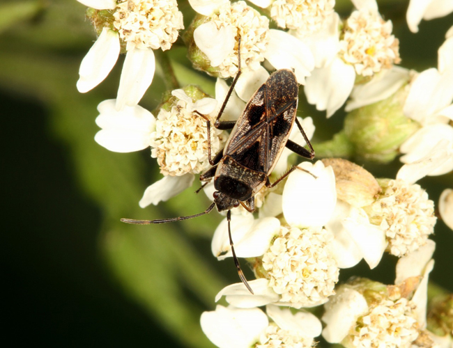 体長7.5mm内外 シロヘリナガカメムシに似るが、触角第4節の基部が黄白色になる。県内では比較的珍しい.(高千穂町,延岡市、日向市、串間市)