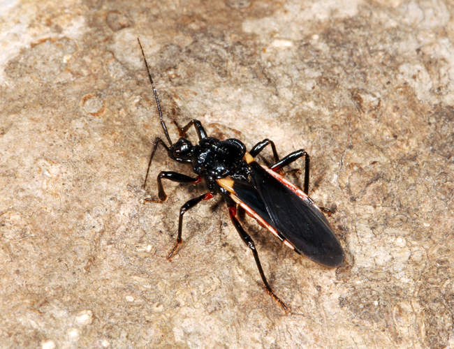 体長11〜14mm 頭と胸が黒く、宮崎県産のものは腹部結合板の前半が赤色になるが、沖縄産の個体は腹部結合板全体が赤色になる。伐採木置場で見つかることが多い。(高千穂町、椎葉村、延岡市、日向市、西都市、宮崎市、日南市)