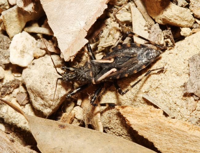 体長14.5〜16mm 前胸背側角が棘状に突出し、革質部に乳白色の縦紋がある。蟻類を捕食し、幼虫は捕食した蟻の死骸を背負う。地上を徘徊しているが、珍しい種類なので生息地は限られている。(高千穂町、西米良村)